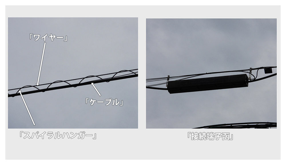 와이어에 등간격으로 옷걸이(케이블 행거)등으로 1개씩 고정해 가는 것보다, 이 나선형 옷걸이를 사용하는 편이 편하게 전주 사이에 케이블을 칠 수 있어, 케이블 자체에 부하가 걸리지 않기 때문에 , 나선형 옷걸이를 사용하는 곳이 증가하고있는 것 같습니다.