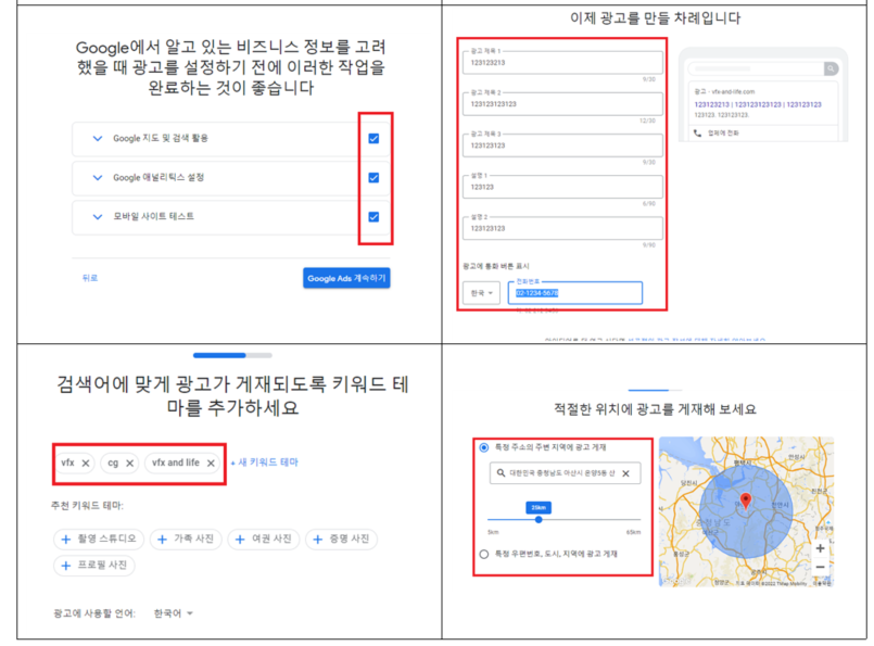 대충, 기본 설정까지 끝내주면 된다. 어짜피 실제 광고를 하고 싶어서 하는 건 아니기 때문에.