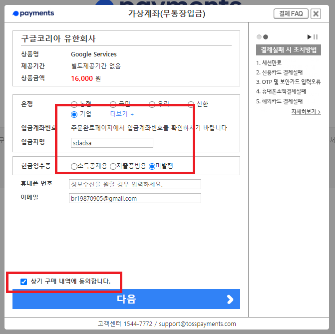결제도 실제 하는게 아니라, 결제 공정만 만들어 놓으면, 무료로 사용이 가능하다.