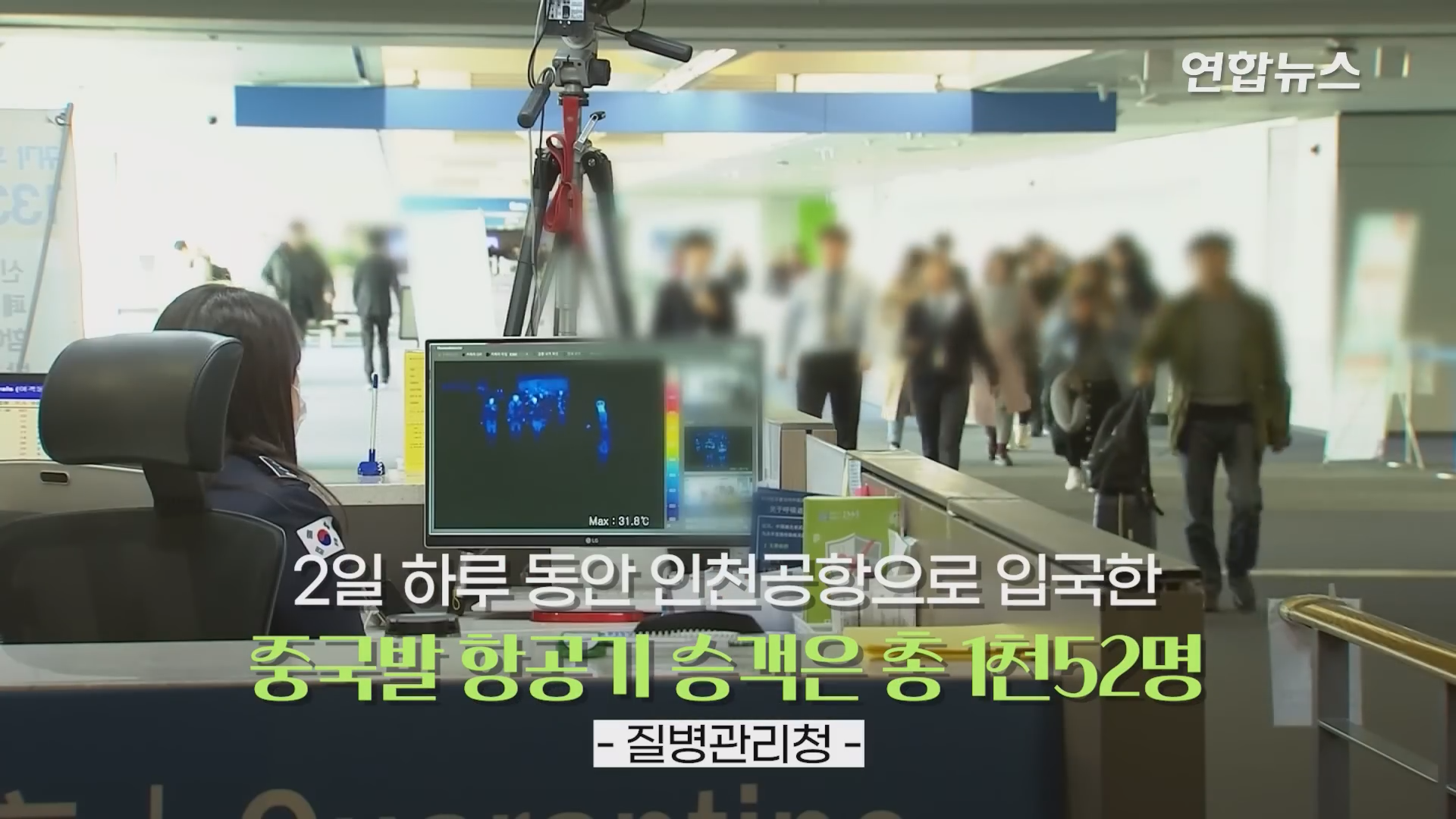 2일 하루 동안 인천 공항으로 입국한 중국발 항공기 승객은 총 1천 52명.