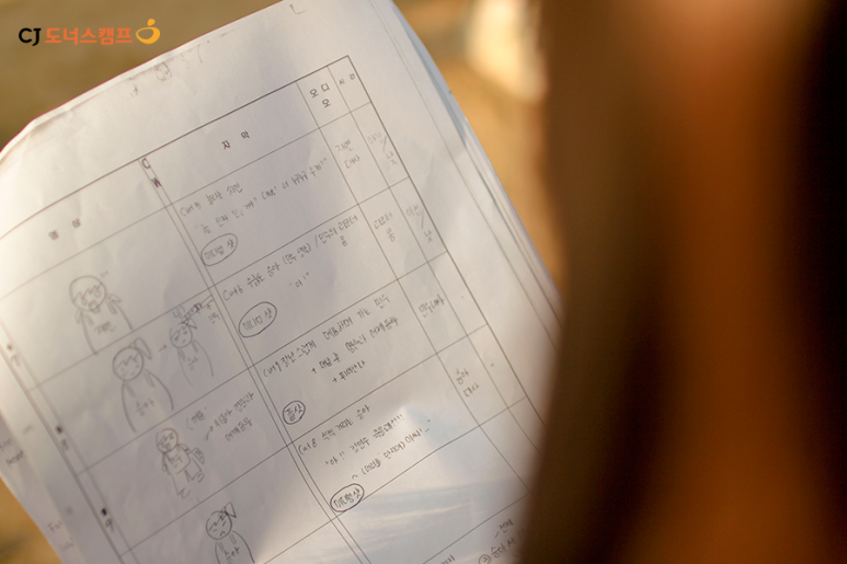 우) 드라마 스크립터는 어디선가 슈퍼맨처럼 파드닥 날라 온다. 특히 무거운 백과사전 형태의 시나리오를 들고...