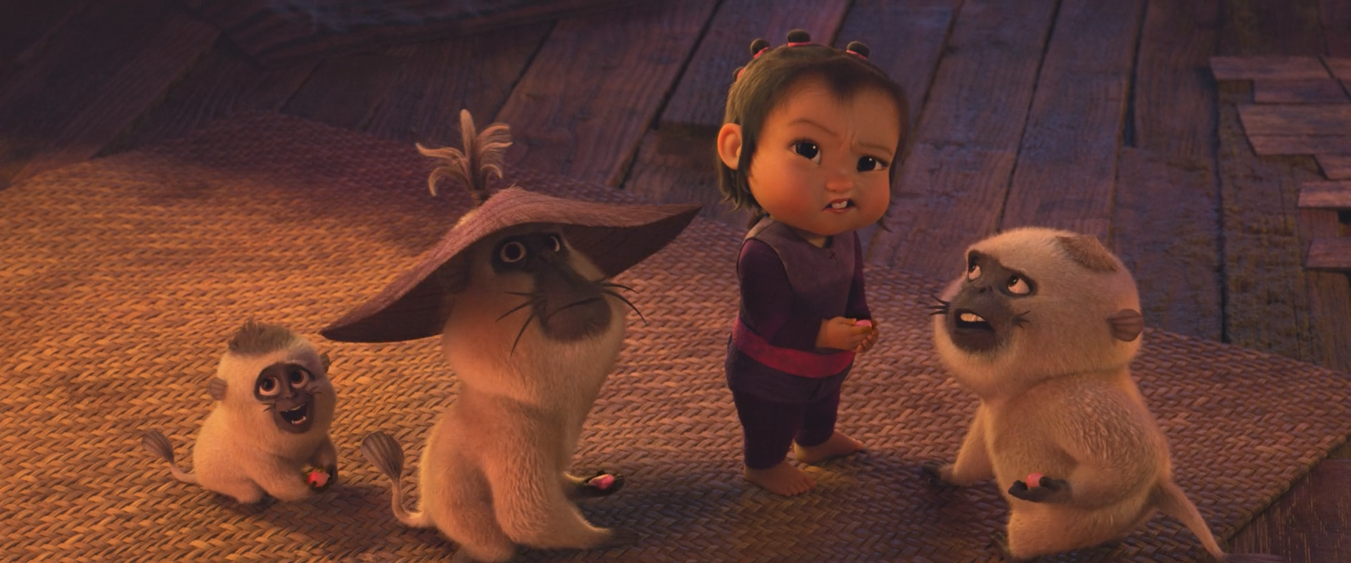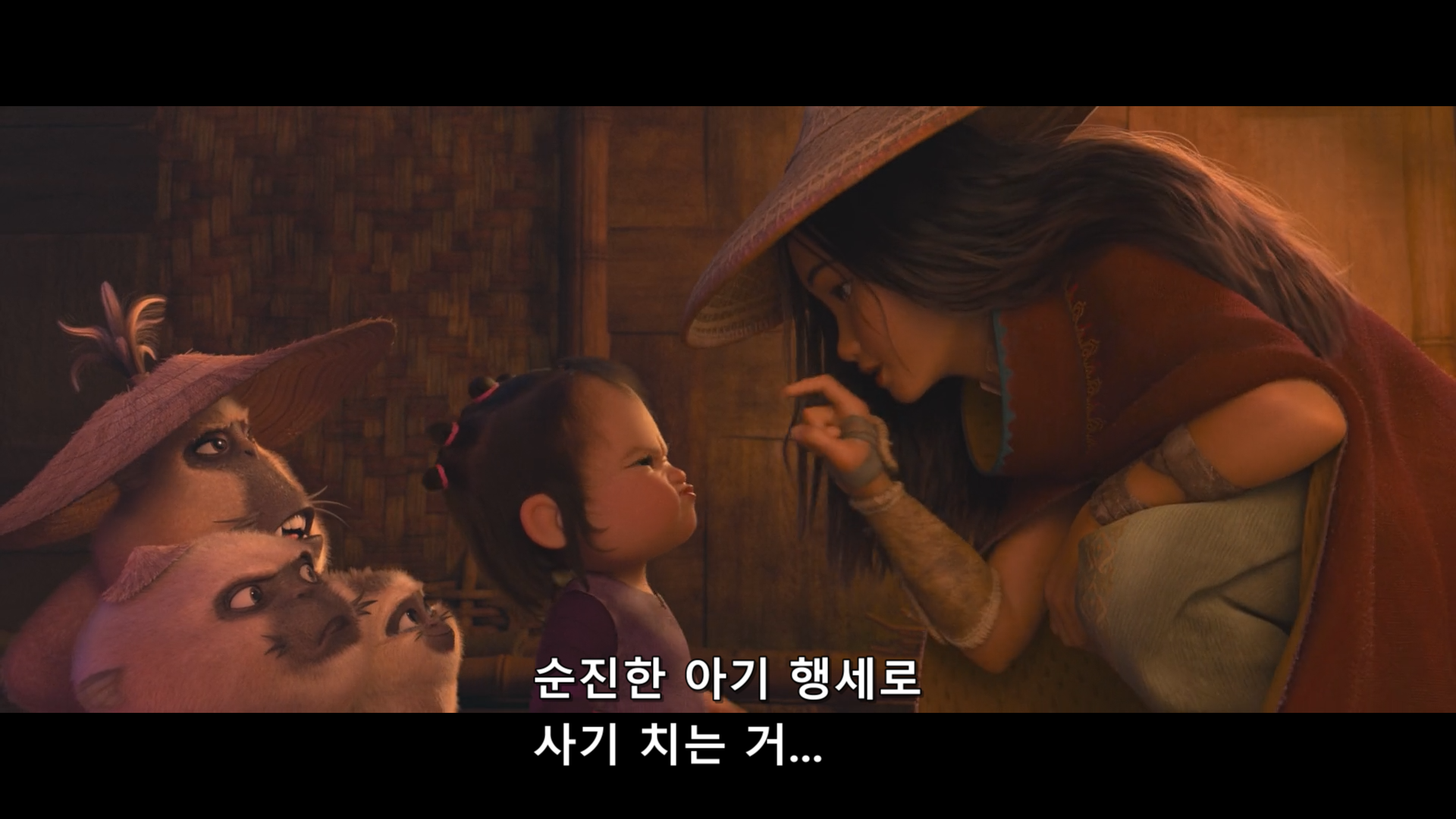 예) ‘라야와 마지막 드래곤‘에선 어린 갓난아이가 원숭이 3마리를 호령하는 도둑으로 나온다.