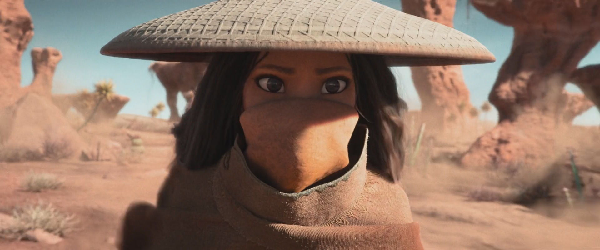 마지막에 가서는 라야는 모자와 마스크를 모두 제거하고 자유롭게 활보한다.