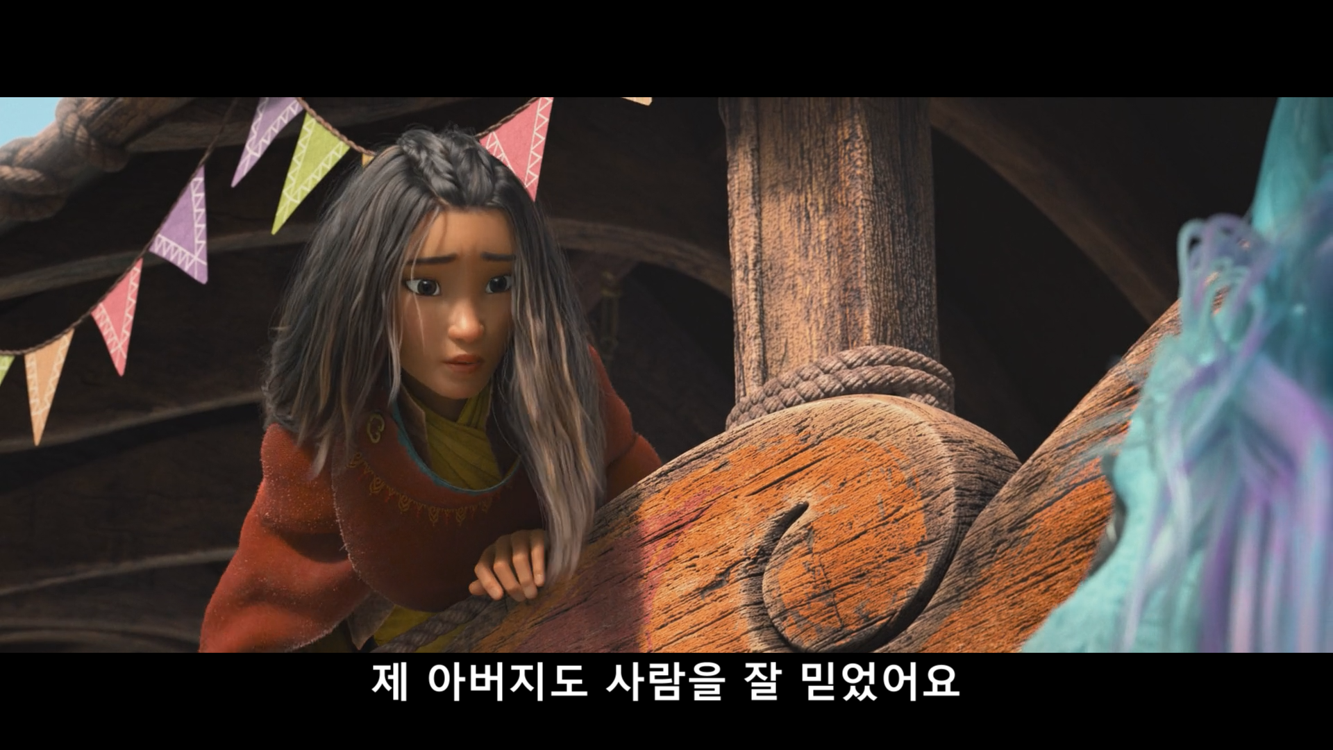 이렇게 생긴 최초의 강한 상처 때문에 라야는 사람을 신뢰하지 않으려 다짐한다.