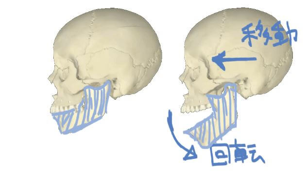 턱은 회전뿐만 아니라 이동도 함께 합니다.