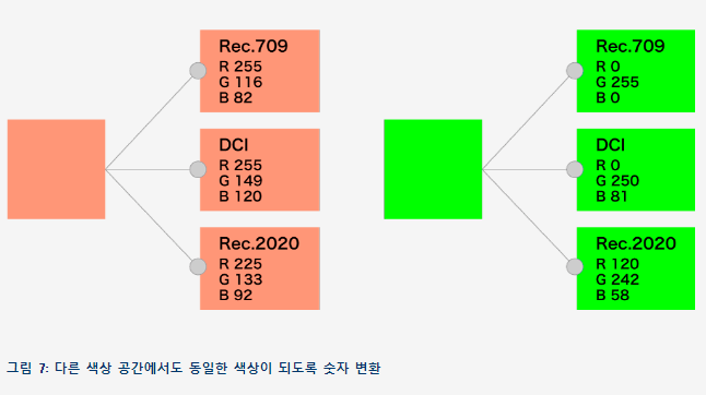 <색공간이 다르면 색재연의 심각한 문제 발생>