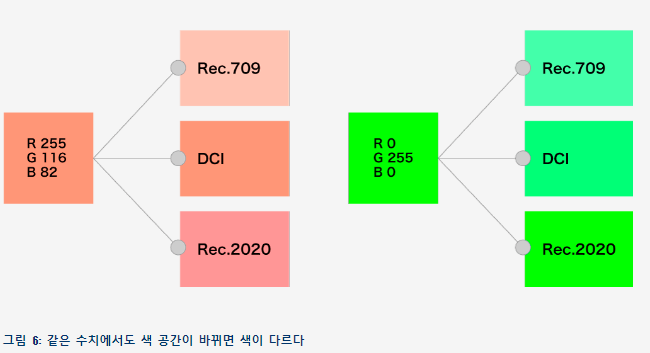 예를 들어, Rec.709보다 DCI 쪽이 선명한 색상을 표시할 수 있습니다.