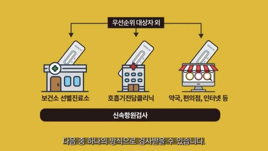 고위험군 (60세 이상) 제외하고 ( 자가진단 &보건소 & 몇몇 지정 병원)에서 검사가 가능하다.