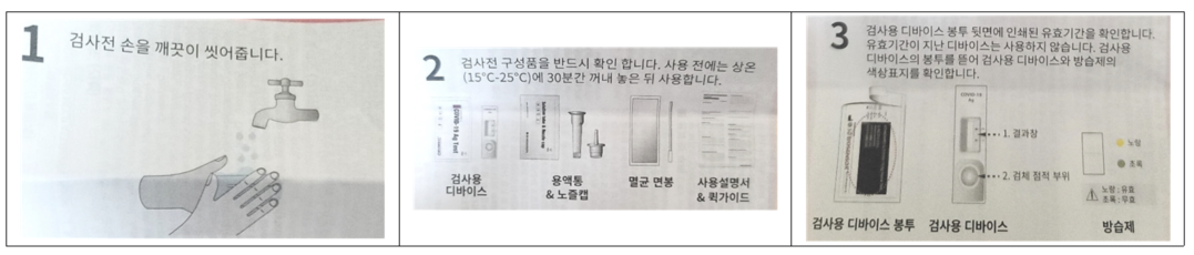 코로나 자가진단 키트는 제조사에 따라 조금씩 다르다.