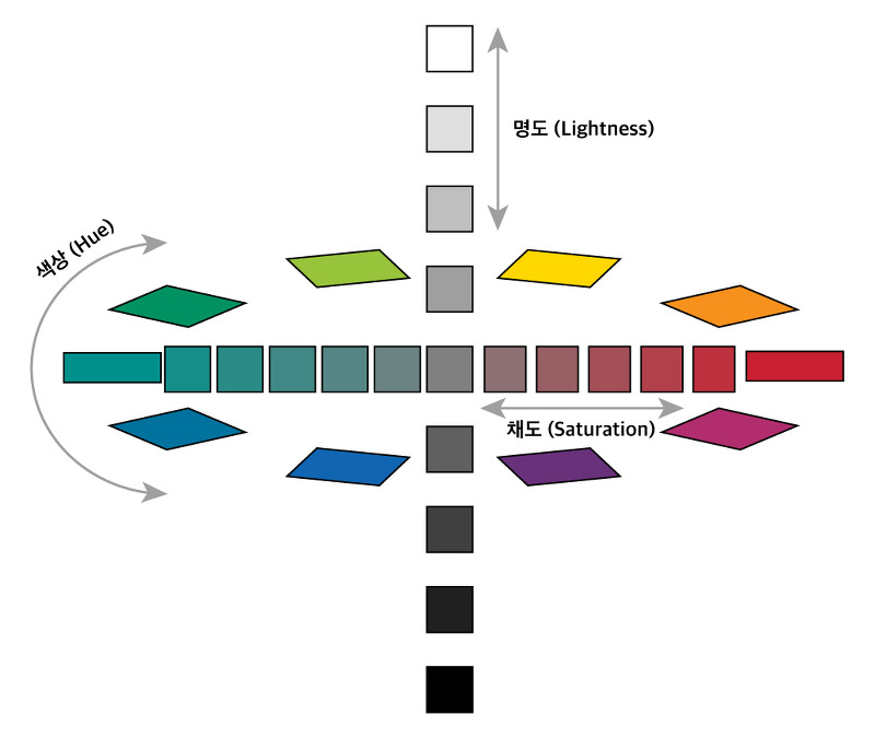 인간이 컬러를 인지할때, 밝기에 민감하며, 컬러는 그다지 민감하지 않다.