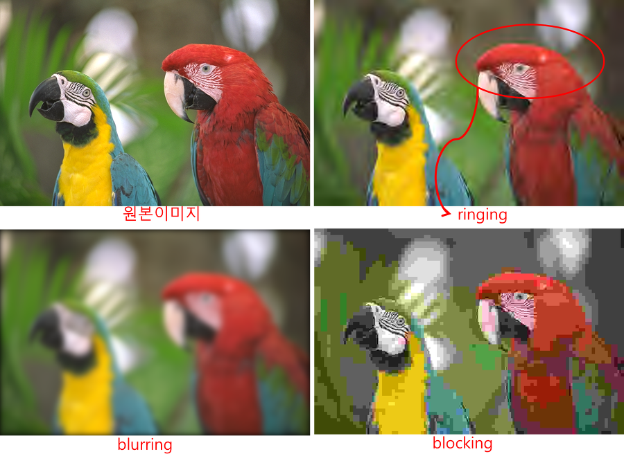 즉, Cb,Cr 채널에 손상이 심하고, 계단 현상이 많이 생긴다.