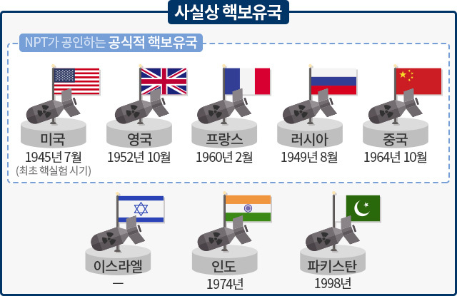 중국은 1968년 NPT에 의해 핵보유를 인정받은 5개 나라 중 하나이다.