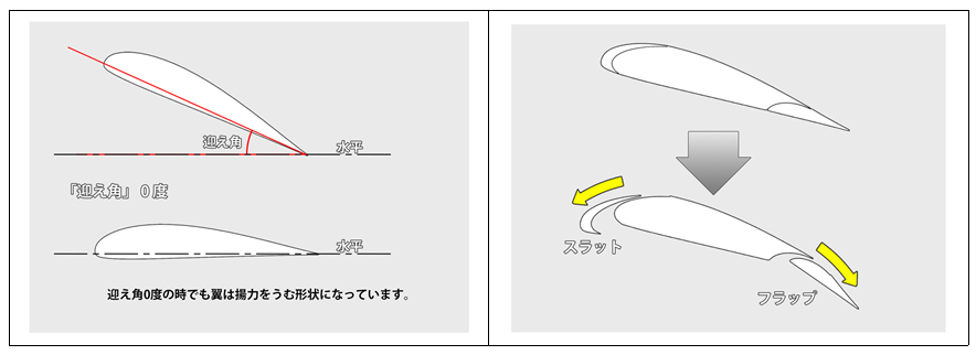 이 각도를 「마중각」 이라고 합니다. 이 각도가 커지면 양력도 커집니다.