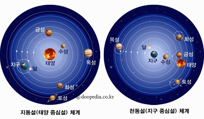 태양이 지구를 중심으로 도는 게 아니라, 지구가 태양의 주위를 도는 것이다.