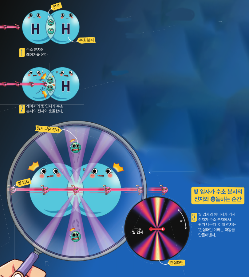 엄청나게 빠른 헬륨가스 레이저의 지속시간을 조금 다르게 2번 이용했다.