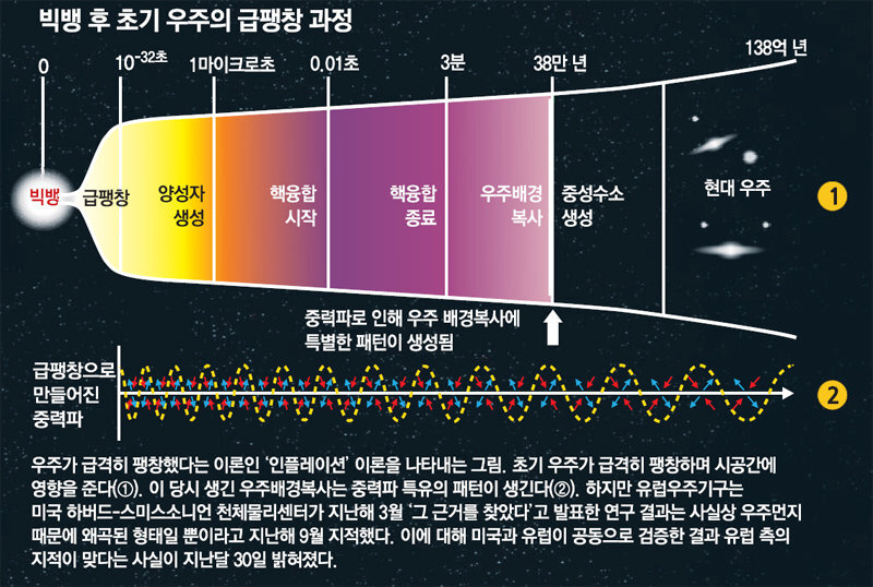 이른바 ‘마이크로파 우주 배경 복사’라고 하는 아주 먼 우주에서 날아온 온도의 미세한 차이를 연구하여 빅뱅 이후 우주의 최초 모습을 상상할 수 있다.
