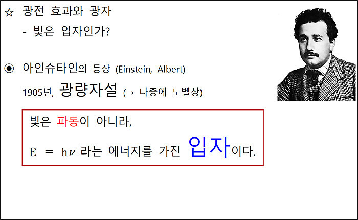 광전 효과를 처음 설명한 사람은 아인슈타인이고,그는 1905년 논문으로 출간했었다.