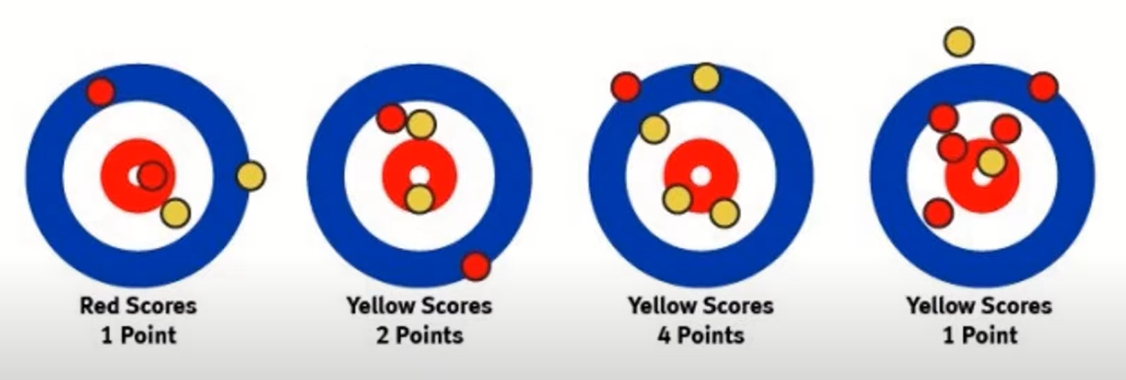 상대팀보다 중심에 가깝게 던져진 스톤 수만큼 득점으로 인정한다.
