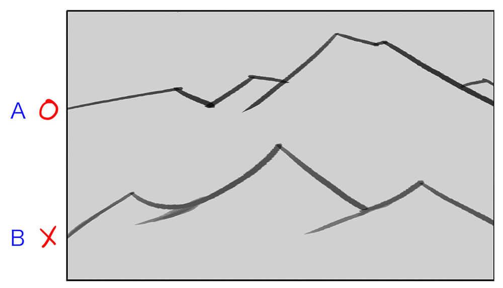 【B】선끼리가 너무 가까우면, 핀치 포인트(Pinch Point)가 태어나, 흐름이 멈추고 비좁은 인상의 그림이 됩니다.