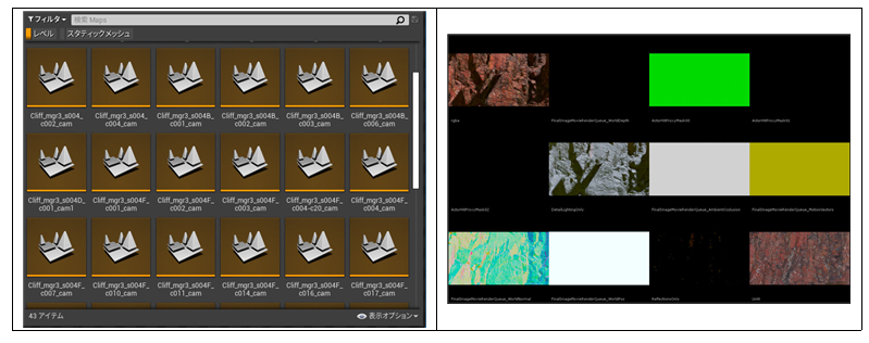 우선, UE를 Maya 나 Houdini 와 같은 영상 제작의 파이프라인에 올릴 수 있는지를 검증하는 것으로 작업은 개시. 우려하고 있던 AOV에서의 출력도 문제 없고, 뷰티의 재구축이나, 포지션이나 노멀 등 유틸리티의 AOV도 다른 소프트와 같이 사용할 수 있는 것을 알았다.