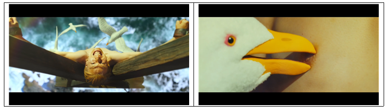 대부분은 3D로 리얼하게 갈매기를 촬영 했을 테지만, 이 장면은 작품의 특성이 묻어 나는거 같다. 누구나 생각하는 상식이 때론 장르에 의해 뒤집힐 수 있다.