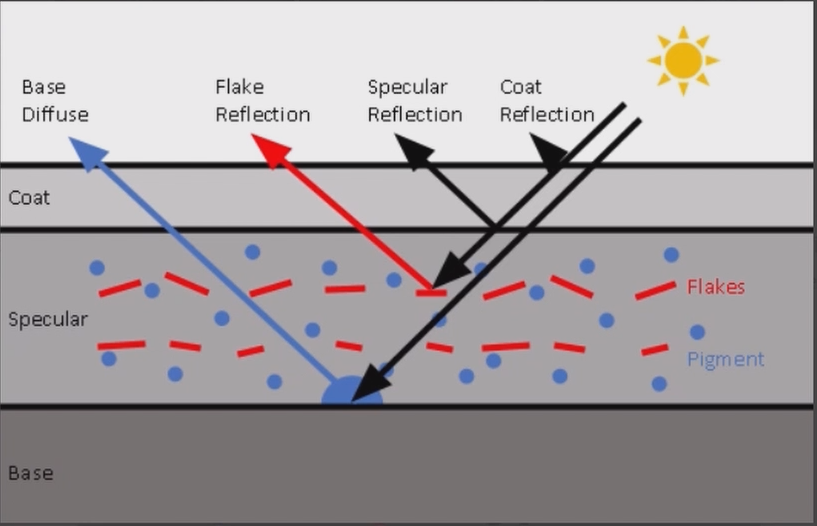 실제 자동차의 표면은 페인트가 여러 겹으로 쌓여 있다.