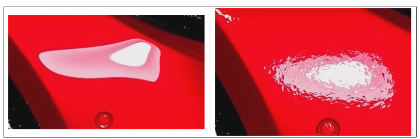 멀리서 확인하면 완벽해 보이는 반사도, 근접해서 보면 오톨토돌 뭉치는 느낌이 된다.