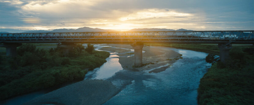 3대의 전체 열차 분량에서 일본 시골의 외경을 합성해야 했다.