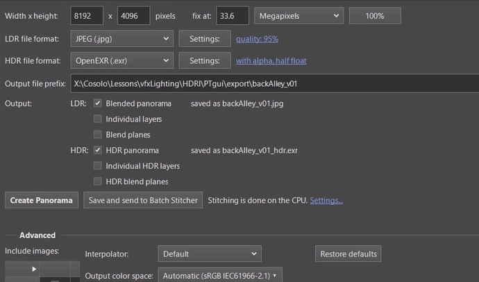 옵션의 설정이 끝나면 < Create Panorama >를 실행해 이미지를 출력한다.