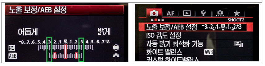 노출 세팅은 카메라의 설정과 지원에 따라 다르다.