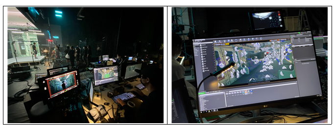 ▲ 촬영 현장에서 UE4 장면의 룩이나 오브젝트의 위치를 조정한다.