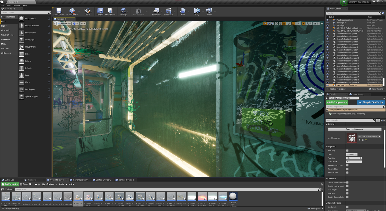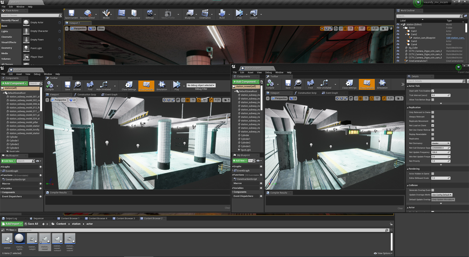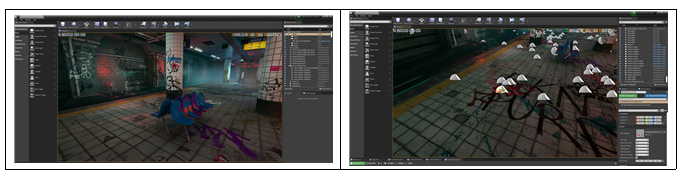 ▲역 구내 모델은 라이트나 소품 등을 포함해 Actor Blueprint로 모듈화했다