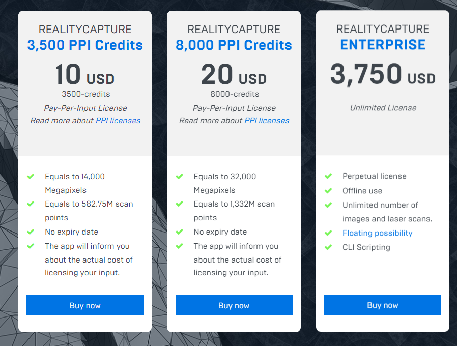RealityCapture의 대표적 라이센스