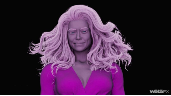 주인공이 헐크로 변할 때 헐크의 모델링 형태와 토폴로지가 조금만 일치하지 않아도 피부와 얼굴이 매끄럽게 연결할 수 없을 것입니다. 그리고 쉬 헐크의 머리카락은 언제나 시뮬레이션을 통해 제작되었는데, 헤어의 경우 얇지만 매우 많아, 마찰력에 의해 움직임이 제한됩니다.