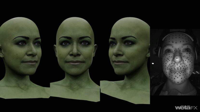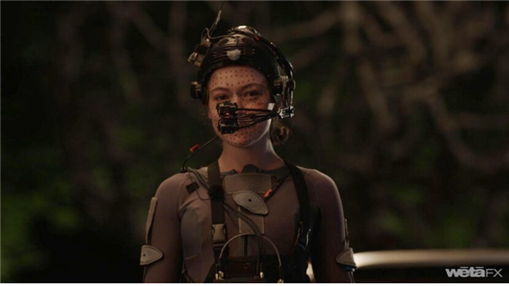 그녀는 얼굴의 리얼한 감정 연기를 캡처하기 위해 머리에 헤드 마운트 수직 스테레오 카메라 장비를 착용해야 했습니다.