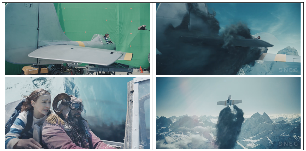 크레인과 장비를 이용해 비행기의 움직임을 그대로 적용.
