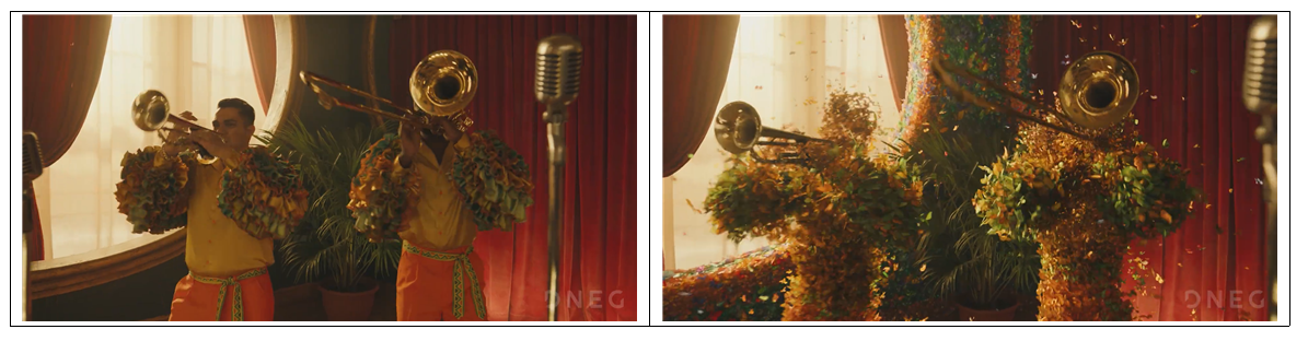3) 나비떼의 사람이 트럼펫을 연주하는 장면