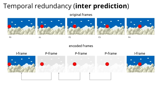 알고리즘은 이미지가 “시작하는” 위치(첫 번째 I-프레임)와 이미지가 “끝나는” 위치(두 번째 I-프레임)에 대한 아이디어를 가지고 있으며 부분 데이터를 사용하여 모든 중복을 제외하고 압축시킨다.