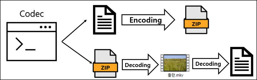 인코딩 = 비디오를 압축을 담당. 디코딩 = 동영상을 볼수 있도록 준비.