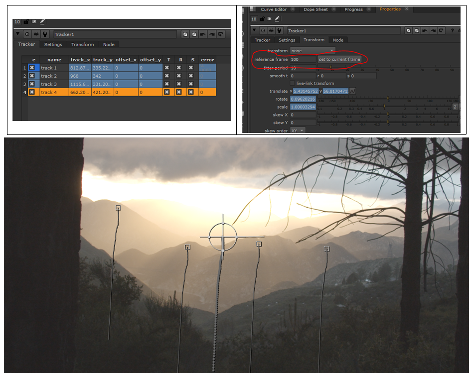 이렇게 기준점 하나를 트랙킹 하고, Transform (stabilize)에 뷰를 연결한 뒤 , 주변에 하나씩 포인트를 추가해서 정확한 stabilize를 진행합니다.