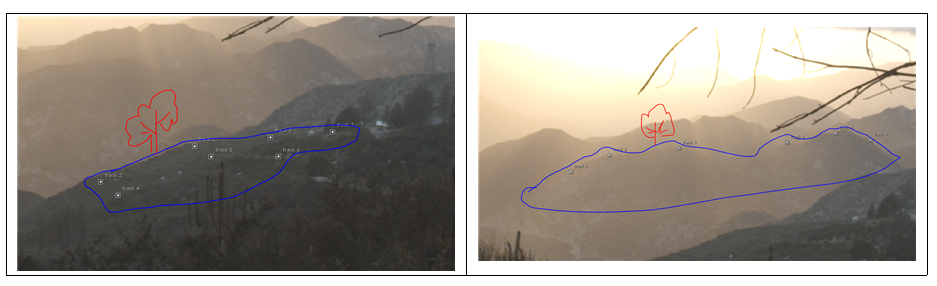 시차가 많이 발생하는 이미지일수록 합성하려는 부분과 유사한 공간에 있는 포인트를 찾아 트랙킹을 진행합니다.