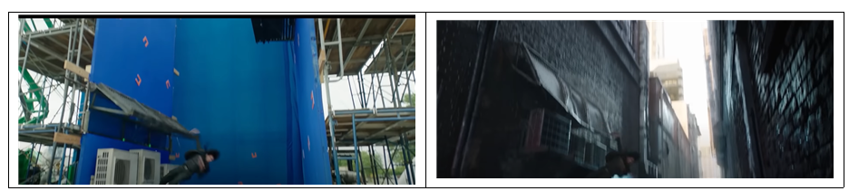 | 대역 배우가 실제 배우와 아주 흡사 | 매우 빠른 액션씬 | 매우 짧은 샷 |