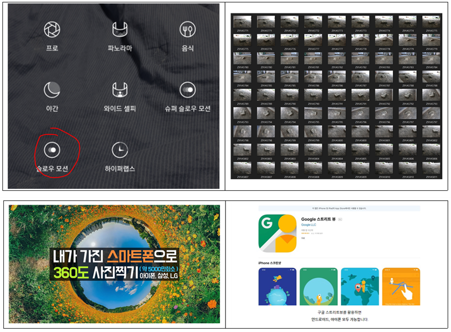 요즘은 여러 360도 촬영 어플이 있음으로, 사전에 설치하고 숙지하면 도움이 된다.